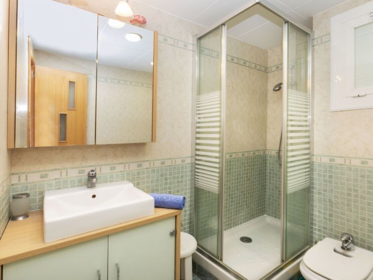 Platja s'Abanell 1 km van Blanes: Flatgebouw "Consul Park", van 10 verdiepingen. In de plaats, 2 km van het centrum van Blanes, 300 m van zee, 270 m van het strand. Voor medegebruik: mooie tuin 700 m2 (omheind) met gazon en planten, openluchtzwembad hoekig (25 x 12 m, 120 - 300 cm diepte, seizoensgebonden beschikbaarheid: 15.Jun. - 30.Sep. en 30.Sep.). Kinderspeelplaats. In het huis: lift. Trappenweg (8 treden) naar het huis. Openbare parkeerplaatsen in de straat. Winkel 50 m, levensmiddelenwinkel 20 m, supermarkt 300 m, restaurant 20 m, bushalte 100 m, treinstation "Blanes" 1 km, zandstrand "Playa S'Abanell" 270 m. Jachthaven 1 km, sportcentrum 500 m. Attracties in de buurt: Marineland 2 km, Waterworld 5 km, Jardín Botánico Marimurtra 2 km, Jardín Botánico Pinya Rosa 4 km. Geschikt voor families. Groepen jongeren uitsluitend op aanvraag.