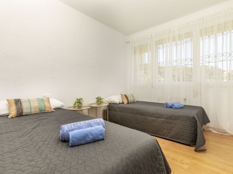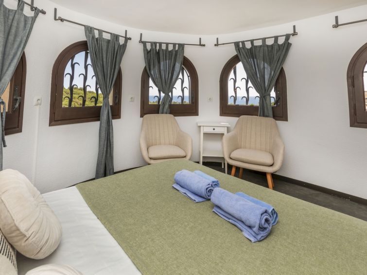 "Castellet", huis 10-kamers 270 m2 op 3 verdiepingen. Zeer doelmatig ingericht: 3 kamers, elke kamer heeft 2 bedden (90 cm, lengte 190 cm). Groot keuken (4-pits kookplaat, oven, afwasmachine, broodrooster, waterkoker, magnetron, diepvriezer, elektrische koffiemachine) met eettafel, Digitale TV. Uitgang naar de tuin, naar het zwembad. Douche/WC. Geen verwarmingsmogelijkheid. Bovenverdieping: woonkamer met Digitale TV. Uitgang naar het terras. 2 2-pers. kamers, elke kamer heeft 2 bedden (90 cm, lengte 190 cm). 1 2-pers. kamer met 2 bedden (90 cm, lengte 190 cm). Uitgang naar de zitplaats in de tuin, naar het zwembad. 1 kinderkamer met 2 x 2 stapelbedden (90 cm, lengte 190 cm). Douche/WC. 2e Verdieping: 1 2-pers. kamer met 1 2-pers bed (150 cm, lengte 190 cm), douche/WC. Terrasmeubelen, ligstoelen, loggia. Uitzicht in de verte op zee en de plaats. Ter beschikking: wasmachine, strijkijzer, kinderstoel, kinderbed tot 2 jaar, haardroger. Internet (WiFi, gratis). Garage (3 Auto's). HUTG-013039