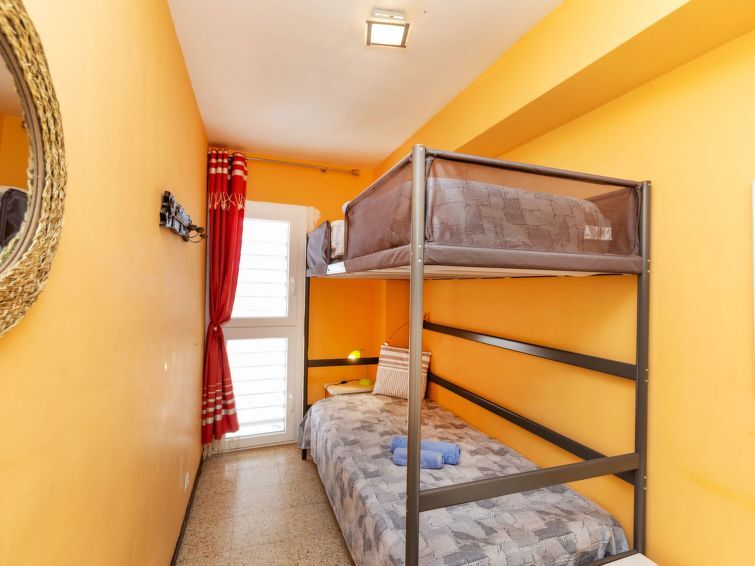 "Jaume II", appartement 3-kamers 70 m2 op de 18e verdieping. Woon-/eetkamer met Digitale TV en elektrische verwarming. Uitgang naar het terras. 1 kamer met 2 bedden (90 cm, lengte 190 cm). 1 kamer met 1 2-pers bed (150 cm, lengte 190 cm). Woonkeuken (oven, afwasmachine, 3 inductiekookplaten, broodrooster, waterkoker, magnetron, diepvriezer, elektrische koffiemachine). Douche/WC. Verwarming. Terras. Terrasmeubelen. Panoramazicht op zee en de plaats. Ter beschikking: strijkijzer, kinderstoel, kinderbed, haardroger. Internet (WiFi, gratis). HUTG-043896 // Reg. Nr.: ESFCTU00001701500014887400000000000000000HUTG-0438967