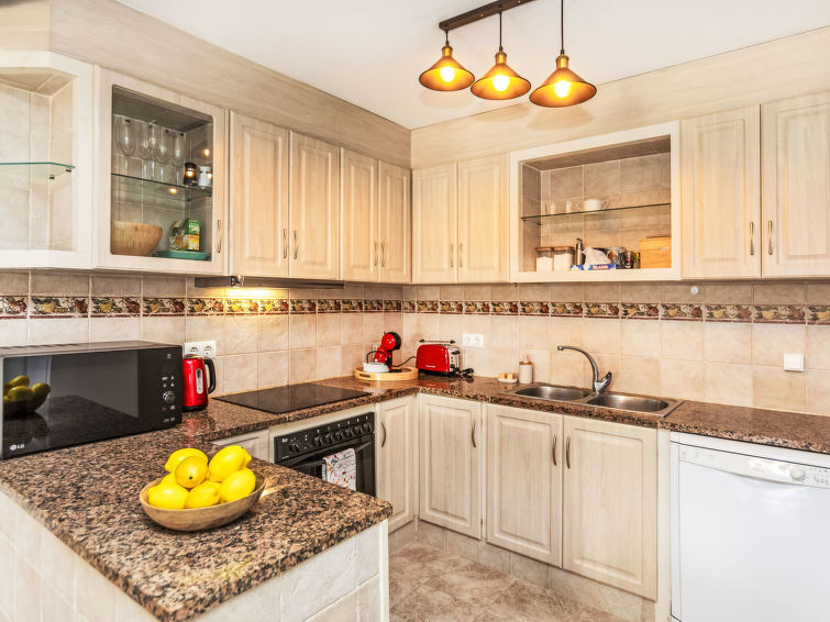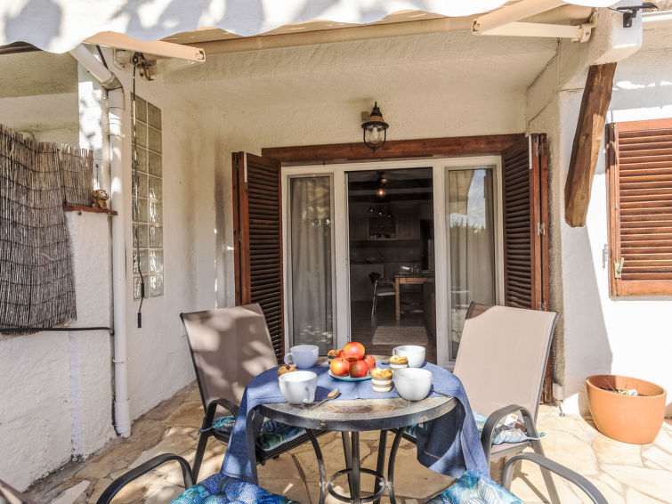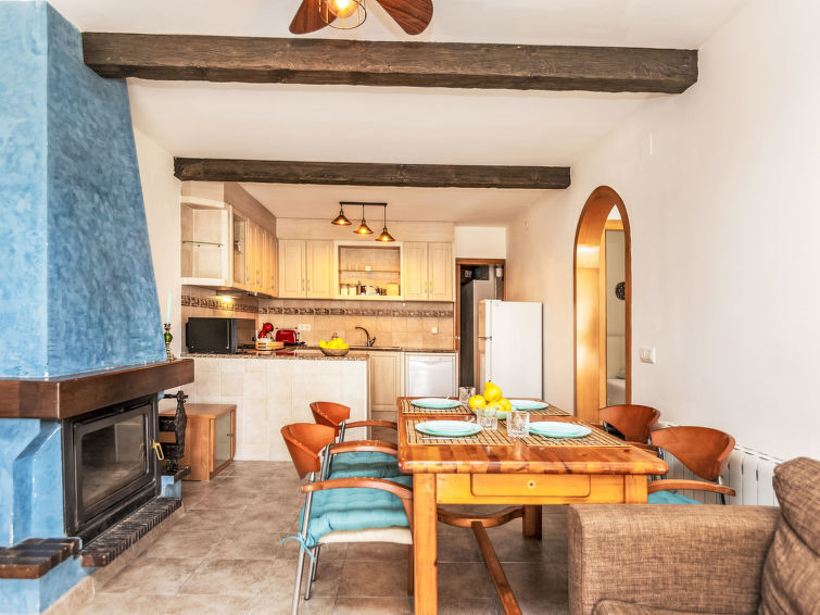 "Nadia", huis in een rij 2-kamers 53 m2. Woon-/eetkamer met open haard (alleen decoratie), eettafel en Digitale TV. Uitgang naar de zitplaats in de tuin, naar het zwembad. 2 2-pers. kamers, elke kamer heeft 1 2-pers bed (150 cm, lengte 200 cm). Open keuken (oven, afwasmachine, 4 keramische glas kookplaten, broodrooster, waterkoker, magnetron, diepvriezer, elektrische koffiemachine). Bad/WC. Geen verwarmingsmogelijkheid. Terrasmeubelen, barbecue, ligstoelen (2). Geen uitzicht. Ter beschikking: wasmachine, strijkijzer, kinderstoel, kinderbed tot 2 jaar, haardroger. Internet (WiFi, gratis). TV alleen ES. HUTG-018332